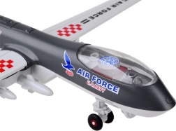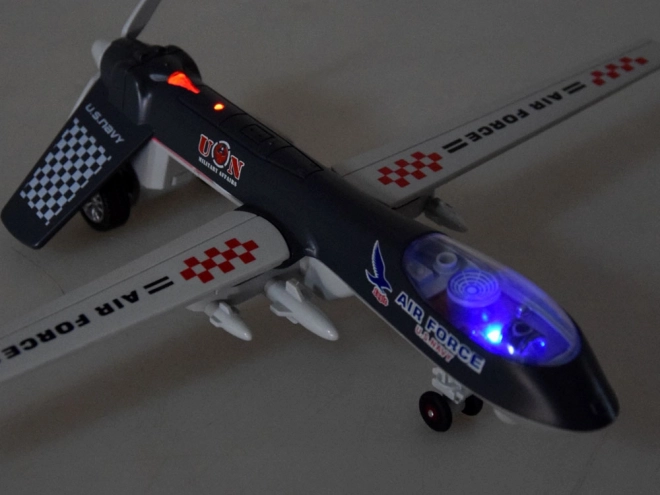 Ved at placere legetøjet på en plan overflade aktiveres lyd- og lysfunktionerne. Du vil høre opstarts- og motorlyde, skud, kamplyde, og cockpittet samt halen lyser op. Dronen er æstetisk udført med fokus på detaljer.