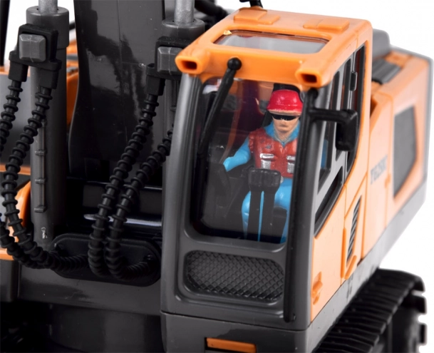Denne RC-graver i legetøjsskala imponerer med præcis udførelse og slagfast plast. Takket være de gummibælter bevæger den sig sikkert på ujævnt underlag, armen hæves og sænkes, og skovlen opsamler materiale som i virkeligheden. LED-lys og motordlyde forstærker den realistiske oplevelse.