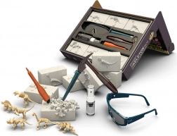 Oplev forhistoriens verden med dette sjove og lærerige sæt til små arkæologer. Børn bruger hammer, mejsel, pensel og forstøver til forsigtigt at frigøre skeletter fra gipsblokke af 6 forskellige dinosaurer og samle dem til modeller. Sættet styrker finmotorik, logisk tænkning og nysgerrighed, og takket være beskyttelsesbriller tilbyder det en sikker og realistisk paleontologisk oplevelse.