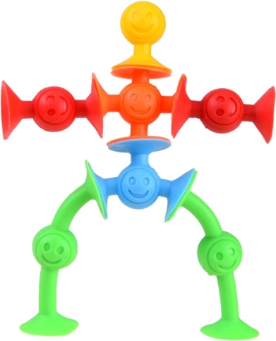 Sættet med silikonesugekopper er ideelt til både børn og voksne. De fleksible dele forbindes nemt ved vakuum – skab tårne, figurer, broer, telefonholdere eller pynt på vinduer og fliser. Takket være vedhæftningen på glatte overflader (glas, vindue, køleskab, bordplade) kan I lege i hvert rum og også under badet.