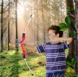 Dette bueskydningssæt til børn er et fremragende valg for små entusiaster af jæger- og bueskydningslege. Den lette plastbue og pile med sugekopper giver sikker underholdning ved træning af sigte på den farverige målskive. Sættet egner sig til både solo-leg og konkurrencer med venner.