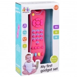 Denne børnefjernbetjening er et godt alternativ til rigtige husholdningsapparater. Takket være den ergonomiske form og de farverige knapper udvikles finmotorik, hørelse og syn, mens de første tal læres på engelsk, fransk og spansk.