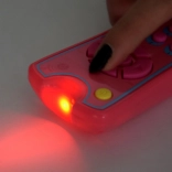 Fjernbetjeningen har en funktionel tænd/sluk-knap, og ved tryk på knapperne afspilles glade melodier, mens et lys tændes. De bløde gummiknapper er behagelige at røre ved og motiverer børn til at udforske og efterligne voksne på en sikker måde.