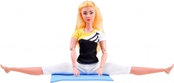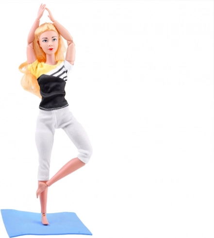 Den fleksible dukke med langt blondt hår er klædt i et sportssæt med elastiske leggings og top, så hun kan træne behageligt. Den leddelte konstruktion muliggør realistisk positionering af arme, ben og overkrop, så yndlingsasanas og gymnastikstillinger nemt kan efterlignes.