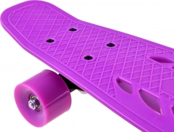 Dette børne-pennyboard er et ideelt valg til de første ture og daglige ærinder. Det holdbare plastdeck er let, nemt at bære og holder foden sikkert på plads takket være den skridsikre struktur. Udskårne huller i platformen fungerer som et praktisk bæregreb, så barnet selv kan bære det.