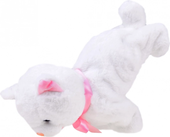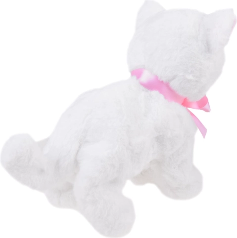 En sød og interaktiv plysbamse-killing bliver enhver barns bedste ven. Ved berøring af poterne eller klap udsender den kattelyde og laver akrobatiske bevægelser. Den bløde hvide pels, lyserødt bånd, lyserød snude og nuttede øjne giver masser af kram og sjov.