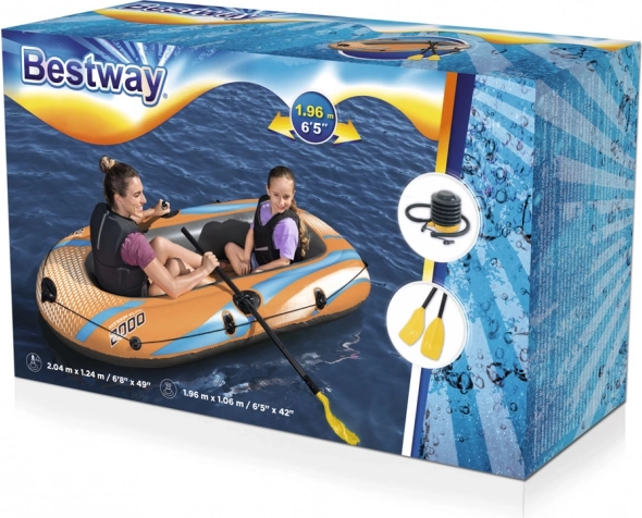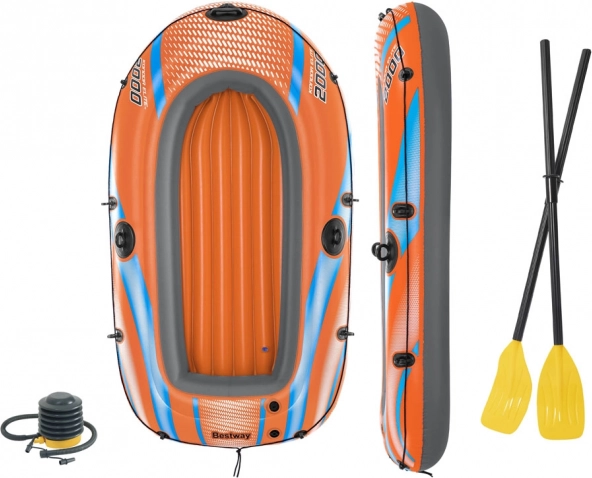 Den oppustelige båd Bestway Kondor Elite er designet til komfortabel og sikker brug på vandet. Takket være de dobbelte luftkamre giver den stabilitet og holdbarhed. Den er udstyret med en komfortabel oppustelig bund og praktiske årefæster, som gør håndteringen på vandet nemmere.