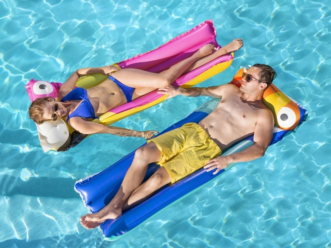 Liggemadrassen har en integreret oppustelig pude, der støtter hoved og nakke for ægte afslapning. Den farverige sommergrafik med fuglemotiv giver din vandleg stil og godt humør. Den lette konstruktion gør det hurtigt at puste op, tømme samt nemt at transportere og opbevare.