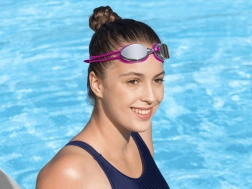 Stilfulde svømmebriller BESTWAY Elite Blast Pro til alderen 14+ tilbyder spejlbelagte polycarbonatlinser med UV-beskyttelse og antifog-behandling. Takket være bløde silikoneforseglinger, hurtig justering af stroppen og latexfri, PVC-fri konstruktion sidder de perfekt og tæt under både træning og rekreativ svømning.