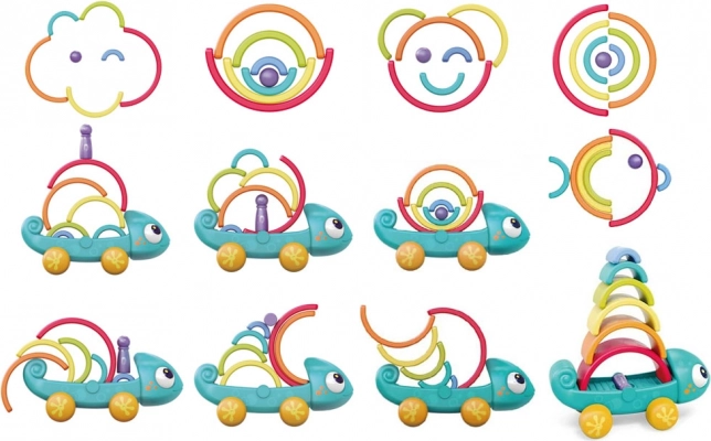Dette farverige kamæleon tilbyder mange måder at lege på, hvilket holder barnets opmærksomhed og fremmer deres kreativitet. Gennem leg med kamæleonen kan barnet udvikle finmotorik, rumopfattelse, evne til at genkende farver og sammenligne.