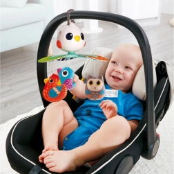 Takket være den universelle klemme kan mobilen let fastgøres til forskellige typer babyudstyr som senge og barnevogne.