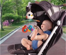 Ophængslegetøj formet som små fugle fanger opmærksomheden og motiverer dit barn til at række ud og lege.