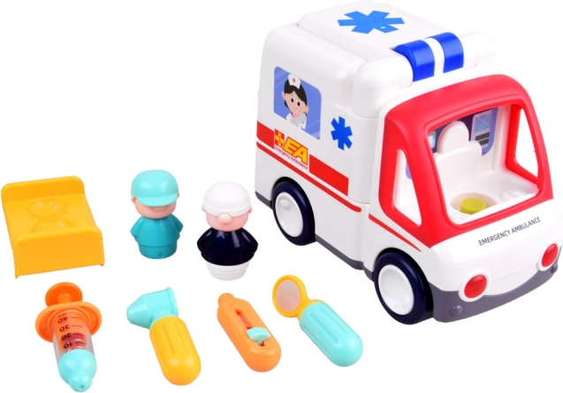 Interaktiv ambulance er den ideelle gave til alle små læger og reddere. Denne detaljeret udstyrede ambulance er altid klar til at rykke ud, hvor der er brug for hjælp.