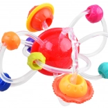 Opdag silikonebidering 2-i-1 med planeter og ringe, som giver lindring ved tandskifte og samtidig stimulerer sanserne. Dette legetøj har en roterende rød planet, hvorfra fleksible silikoneslanger udgår med farverige ringe med forskellige udstikkere, der hjælper med at massere dit barns irriterede gummer.