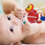 Bideringen er en fremragende hjælp til at lindre smerter under tandskifte takket være de varierede overfladestrukturer. Den motiverer til leg med sine livlige farver og let gribbare slanger. De fleksible elementer gør det nemt for børn at gribe og bevæge sig rundt på legetøjets overflade.