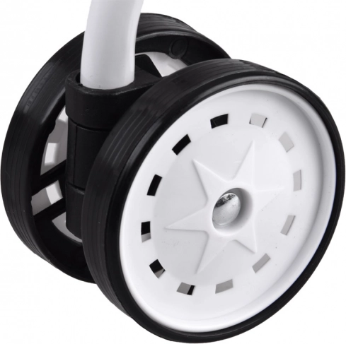 Drejelige dobbelthjul sikrer stabilitet og glidende bevægelse på forskellige underlag, så turen altid er komfortabel.
