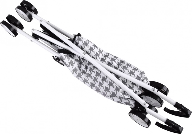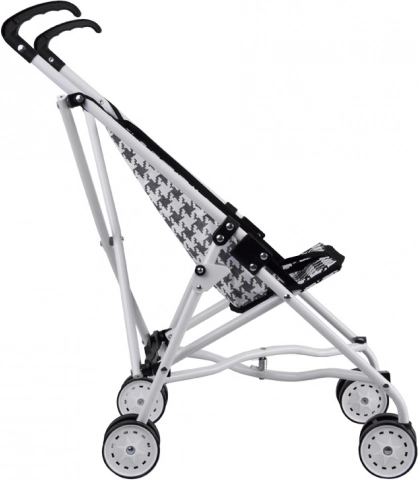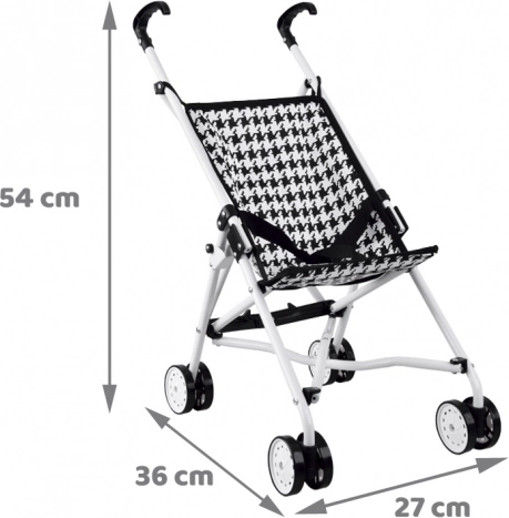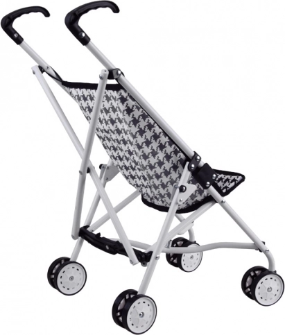 Opdag den perfekte makker til kreativ leg – en sammenklappelig dukkevogn med sort-hvidt pepitomønster. Den robuste metalramme, komfortable håndtag og sikkerhedssele sørger for, at dukken sidder trygt, og at barnet kan køre uden besvær. Takket være de kompakte mål er vognen nem at bære og opbevare.