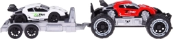 Sættet inkluderer off-road køretøj, sportsvogn med trailer – den komplette løsning til forskellige legetidsscenarier.
