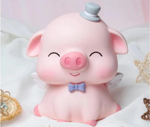 Denne charmerende sparegris i lyserød med hvide vinger, blå butterfly og gul krone kombinerer funktionalitet og glæde. Den gør det muligt at opbevare alle almindelige mønter samt sammenfoldede sedler og gør samtidig indretningen hyggeligere. Den er ideel til børn, der lærer pengenes værdi, og til voksne, der vil have små opsparinger samlet ét sted.