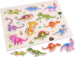 Udforsk de forhistoriske væsners verden med et kvalitets træ-knoppuslespil med dinosaurer. Delene er designet i en venlig, eventyrlig stil, og hver har et praktisk greb, så børn nemt kan løfte dem og sætte dem tilbage i udskæringerne. Under legen træner børn formgenkendelse, opmærksomhed og hånd–øje-koordination.