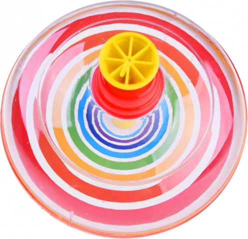 Denne tidløse snurretop bringer glæde på tværs af generationer. Tryk blot det øverste stempel ned et par gange, så spinner den om sin egen akse – de farvede koncentriske ringe skaber en fascinerende regnbueeffekt, som med garanti fanger børns interesse. Under rotation afgiver snurretoppen en karakteristisk lyd, der forstærker underholdningen.