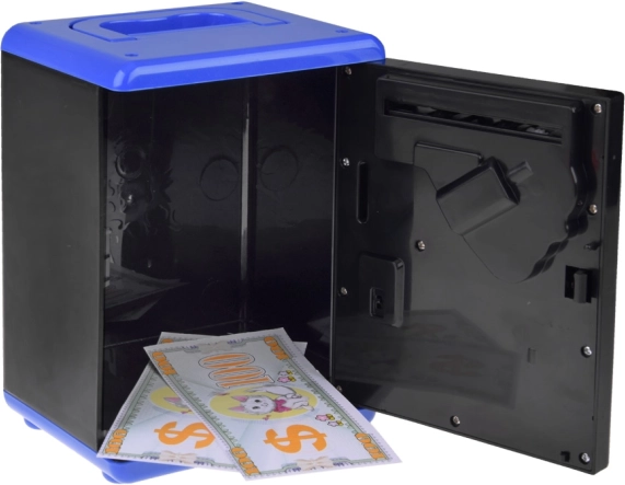 - Lære at spare: Når sedler føres ind i åbningen, bliver de automatisk trukket ind og ledsages af en munter melodi.
