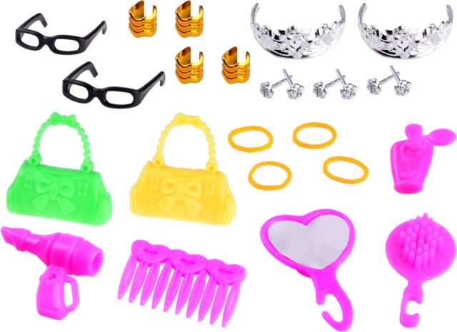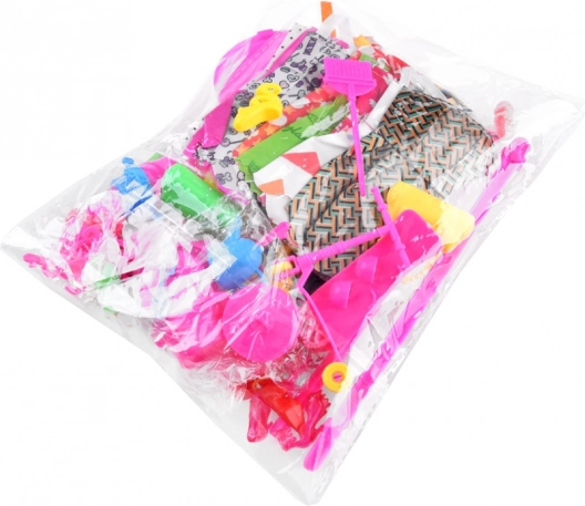 Ud over mode indeholder sættet også små sports-, køkken- og rengøringstilbehør, som gør det muligt for børn at lege realistiske scener fra hverdagen. Alt er let, farverigt og tilpasset nem håndtering.