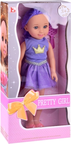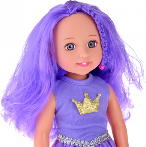 Dukke lilla dronning med kam 38 cm