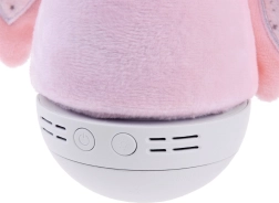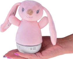 Denne sarte lyserøde kanin kombinerer blød plys med praktiske funktioner som natlampe og beroligende musik. Skiftende lysfarver oplyser rummet blidt og skaber en behagelig, tryg atmosfære før sengetid. Den integrerede spilledåse med melodier hjælper børn med at falde nemmere i søvn og finde ro.
