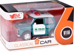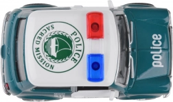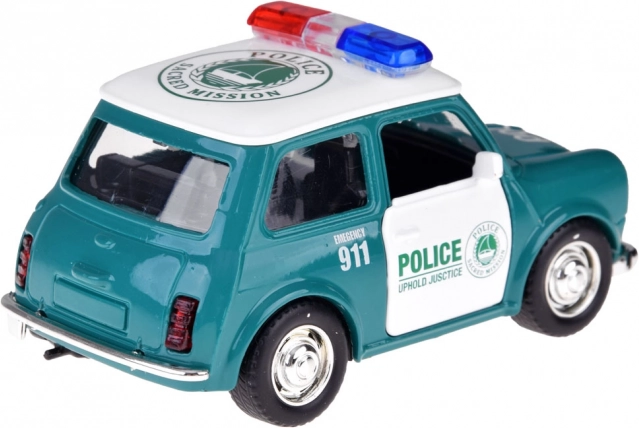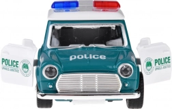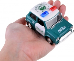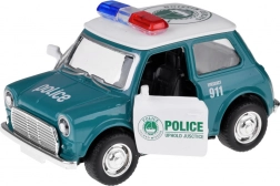 Det miniature politibil med klassisk design byder på realistiske detaljer, herunder røde og blå blink samt tydelige politimarkeringer. Metalkarrosseri og gummihjul øger både holdbarhed og vejgreb, så bilen er ideel til daglig leg hjemme og på farten.
