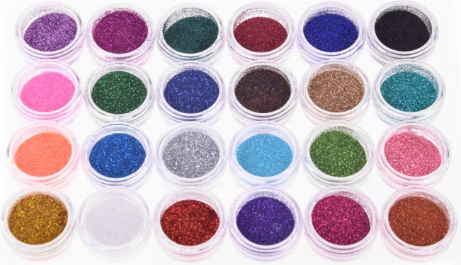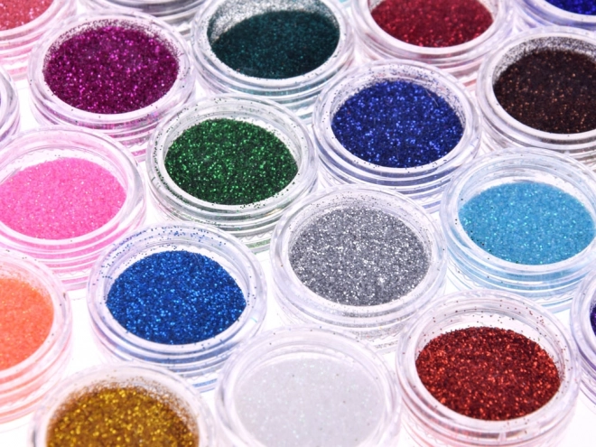 Sættet indeholder alt, hvad du behøver for at lave funklende glimmertatoveringer med 24 forskellige glitterfarver.