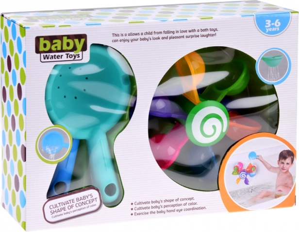 Giver dit barn mulighed for at nyde sjov med farverige, bevægelige kopper, der roterer, når der hældes vand på dem, og barnet lærer om bevægelse og feedback. Dette legetøj understøtter motorisk udvikling, kognitive funktioner og koordineringsevner. Under legen kan barnet lære farver, tælle og forestille sig forskellige historier. Dette badelegetøj er nemt at flytte og skille ad, hvilket gør det muligt at placere det på siderne af badekarret, bruseren eller poolen. Den farverige regnbue af kopper begynder at dreje rundt, mens vandet sprøjter og stimulerer barnets hørelse.