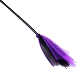 Let kost med plastikgreb og sort-lilla afslutning er ideel som rekvisit til fastelavn og halloweenkostumer.