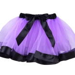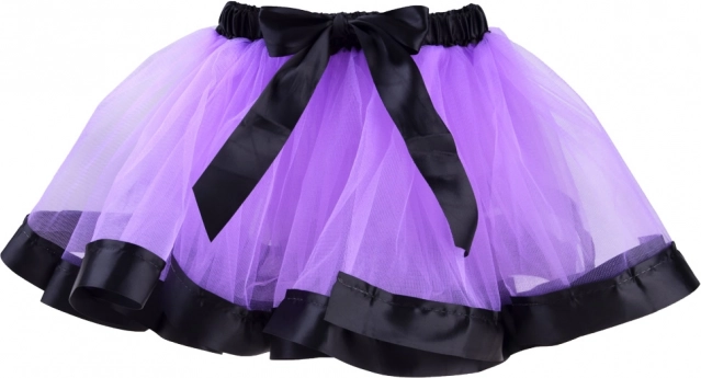 Flerlags lilla tyl med satin-kanter giver både fylde og lethed. Takket være elastikken i taljen sidder skørtet behageligt og tilpasser sig figuren.