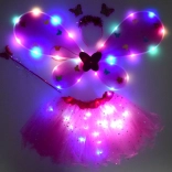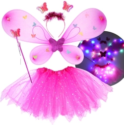 Fortryllende udklædningssæt til børn består af en rosa tutunederdel, sommerfuglevinger, hårbøjle og tryllestav. Takket være integrerede LED-lys i både nederdel og vinger skaber det en magisk effekt, der lyser enhver fastelavn, fest eller leg derhjemme op. Den komfortable elastiske talje og det lette tyl med glitrende stjerner sikrer komfort og fantasi uden grænser.