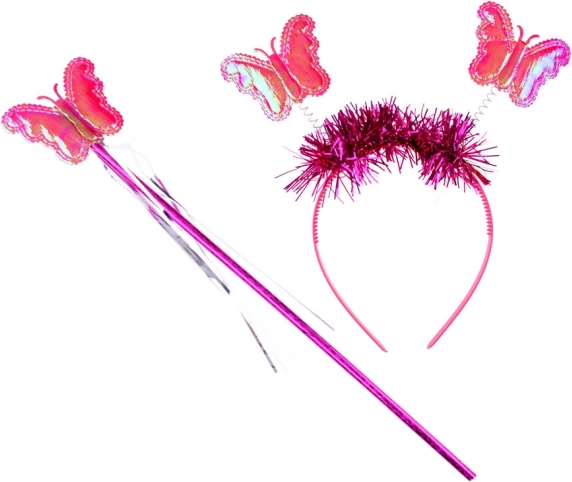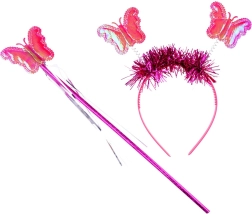 Farverige sommerfuglevinger, hårbøjle og tryllestav fuldender det perfekte fe-look til fastelavn og leg derhjemme.