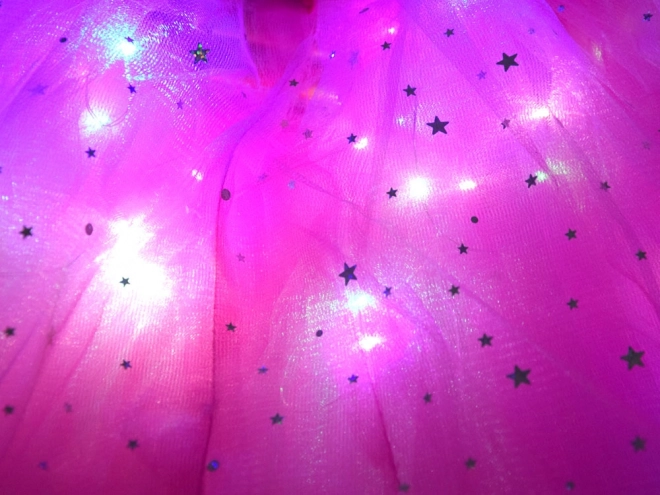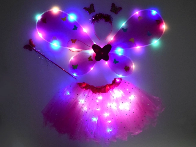 Nederdel og vinger er udstyret med LED-dioder, som skaber en fortryllende lyseffekt ved hver bevægelse.