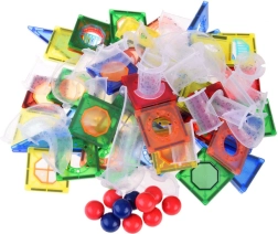 Vi præsenterer magnetiske byggesæt, der giver børn mulighed for at bygge deres egne kuglebaner. Dette sæt indeholder 123 dele, inklusive magnetiske byggedele og plastdele til kugleslids. Børn vil nyde timers sjov, mens de udvikler deres kreativitet og lærer om farver og former.
