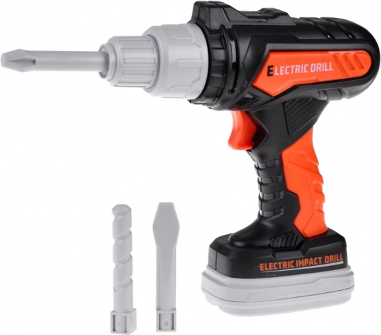 Boremaskinen i sættet drejer i begge retninger, hvilket gør det muligt for effektiv indskruning og udsrækning af skruer, hvilket realistisk efterligner arbejdet med en rigtig boremaskine.