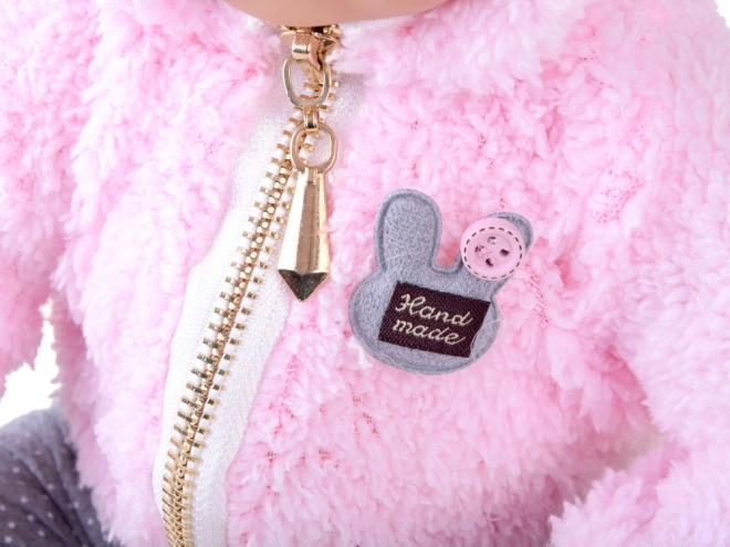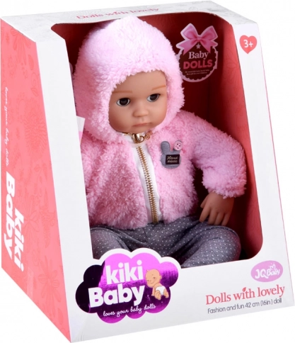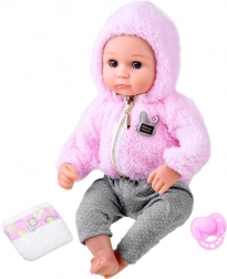 Dukken ligner en nyfødt. Den har en blød krop af stof og hoved, arme og ben af hård gummi. Når du lægger dukken ned, lukker øjnene sig. Som en rigtig baby har den ikke hår på hovedet, men den holdes varm af en blød og behagelig lyserød hættetrøje. Hele outfittet fuldendes af stilfulde grå leggings med prikker.