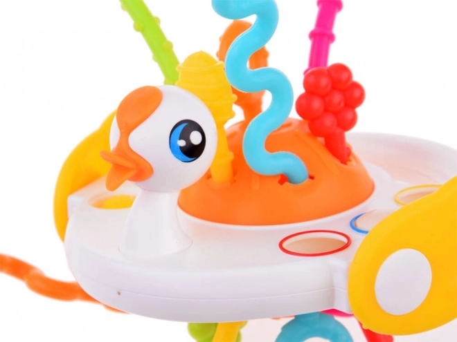 Dette farverige sensoriske legetøj i svaneform understøtter en naturlig udvikling af dit barns sanser og færdigheder. Kombinationen af forskellige overflader, bløde knapper og træksnore med lyd og vibration giver nye stimuli, træner grebet og styrker hånd–øje-koordinationen.
