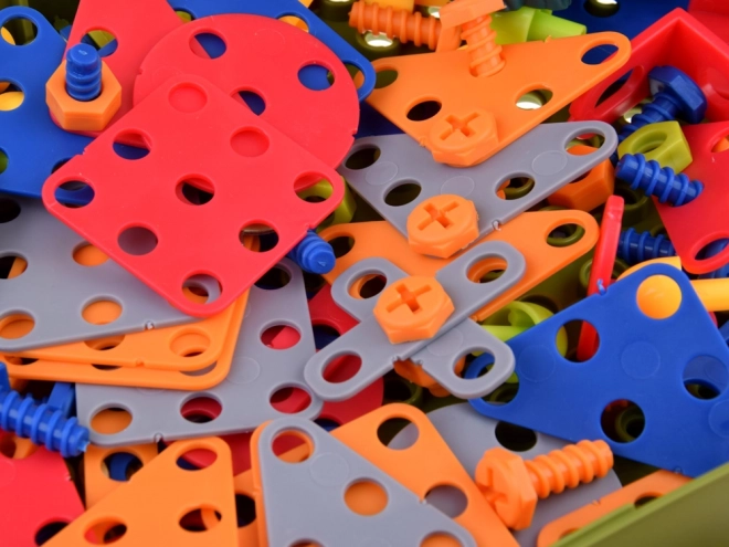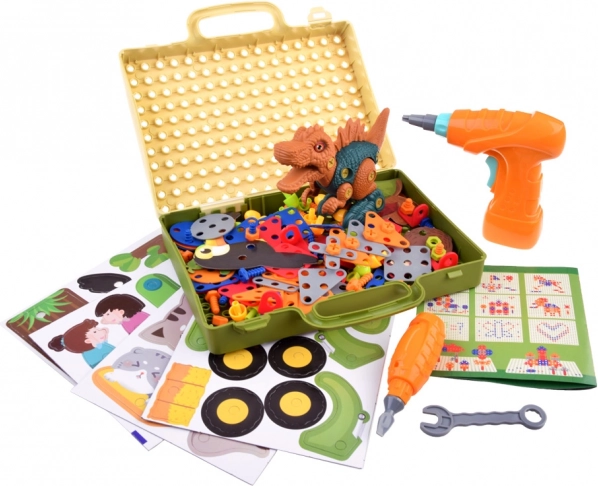 Byg din egen forhistoriske verden med et kreativt skruebyggesæt til børn. Takket være den batteridrevne børne-boremaskine, de farverige skruer og dele og den praktiske kuffert med perforeret plade udvikler børn finmotorik, logisk tænkning og fantasi.