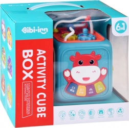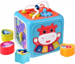 Interaktiv læringskube 6-i-1 med klaver, labyrint og sorteringsklodser