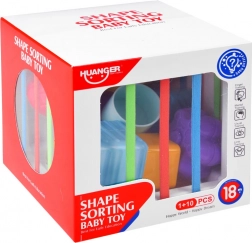 Børn lærer naturligt at genkende former og farver takket være et varieret sæt med 10 brikker og formede åbninger.