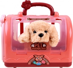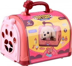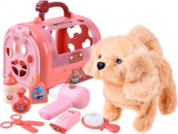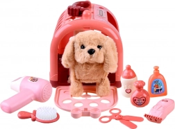 Opdag et sødt plejesæt til kæledyr: en interaktiv plyshund i en transportabel boks og masser af tilbehør til legesalon. Hunden kan gå fremad, gø, vifte med halen og laver hvalpelyde, når den bliver klappet. Med transportkasse, kam, saks, føntørrer og flere accessories – perfekt til kreativ og realistisk leg for børn fra 3 år.