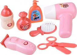 - Rigt tilbehør: føntørrer, trimmer, børste, kam, saks, sutteflaske, “shampoo”, “parfume”, klistermærker.