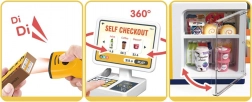 Børn kan scanne varer, indtaste priser og betale med kort eller “kontanter”. Det lydgivende kasseapparat og den lysende scanner understøtter realistisk leg og læring i basal matematik.