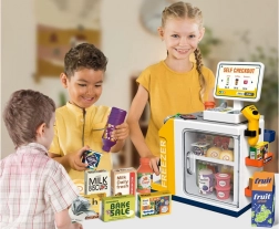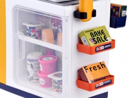 Den aflåselige køledel rummer yogurter, juice, desserter og andre madrekvisitter. Ideel til leg som café, butik og selvbetjeningskasse.