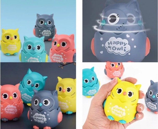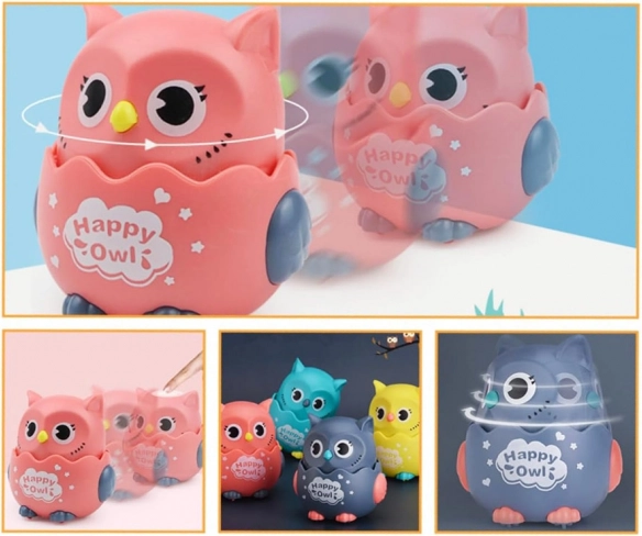 Denne søde kørende ugle er lavet af holdbar plastik, har store øjne og glatte former, der er sikre for børnehænder. Med den enkle mekanisme skal du blot trykke på hovedet, og uglen suser afsted – børn vil med glæde følge efter den og bliver naturligt motiveret til at bevæge sig og kravle.