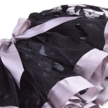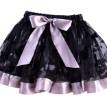 Sort netnederdel med dekorative mønstre, lilla kant og sløjfe. Den elastiske talje sikrer komfort og nem påklædning.